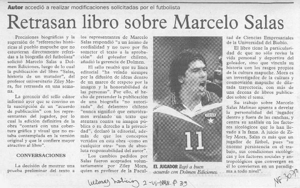 Retrasan libro sobre Marcelo Salas [artículo].