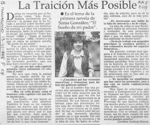 La traición más posible [artículo] Carolina Andonie Dracos.