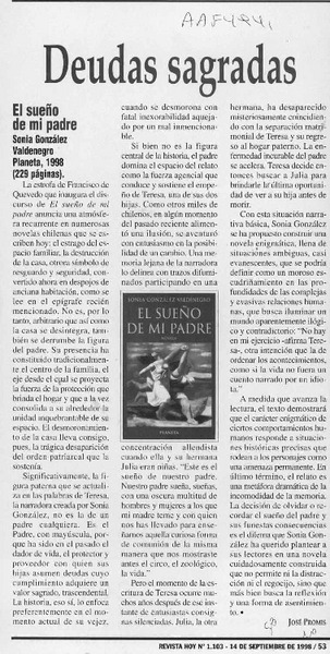 La primera novela de Sonia González [artículo] Ramiro Rivas.