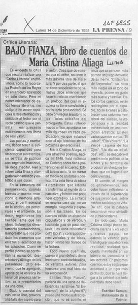 Bajo fianza, libro de cuentos de María Cristina Aliaga [artículo] Samuel Maldonado de la Fuente.