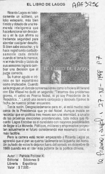 El libro de Lagos [artículo] Alejandro Witker.