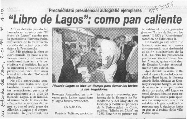 "Libro de Lagos", como pan caliente [artículo].
