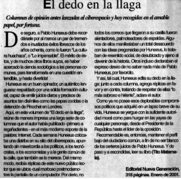 Autores chilenos - Huneeus, Pablo - Dedo en la llaga