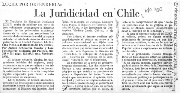 La Juridicidad en Chile. [artículo]