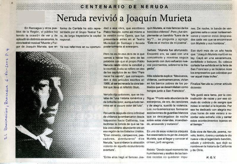 Neruda revivió a Joaquín Murieta [artículo] H. G. V.