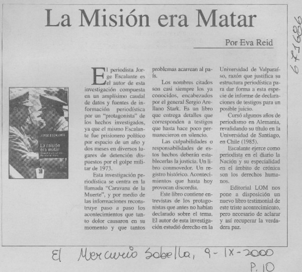 Autores chilenos - Escalante, Jorge - Misión era matar