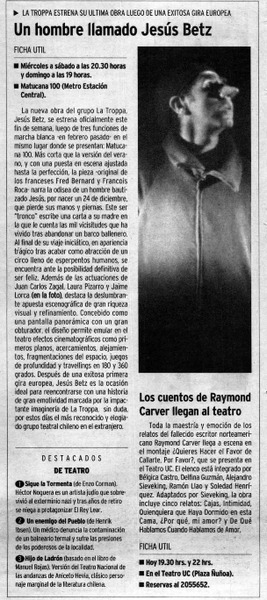 Compañía La Troppa llega con espectacular montaje a los Carnavales Culturales 2003 [artículo]