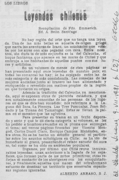 Autores chilenos - Leyendas chilenas - Emmerich, Fernando