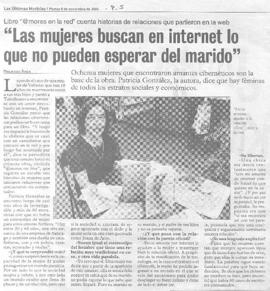 "Las mujeres buscan en internet lo que no pueden esperar del marido" [artículo]Mauricio Avila.