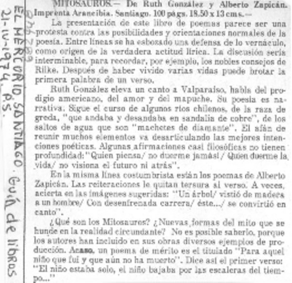 Autores chilenos - González Vergara, Ruth - Mitosauros - Zapicán, Alberto