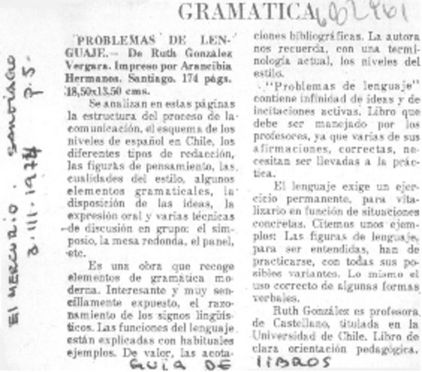 En torno a "Problemas de lenguaje" de Ruth González V. [artículo] M. Angélica Contreras Ramos.