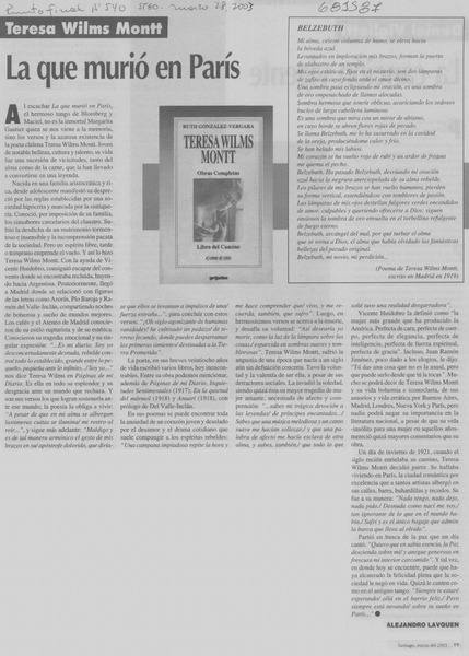 Autores chilenos - Wilms Montt, Teresa - González Vergara, Ruth - Teresa Wilms Montt, obras completas