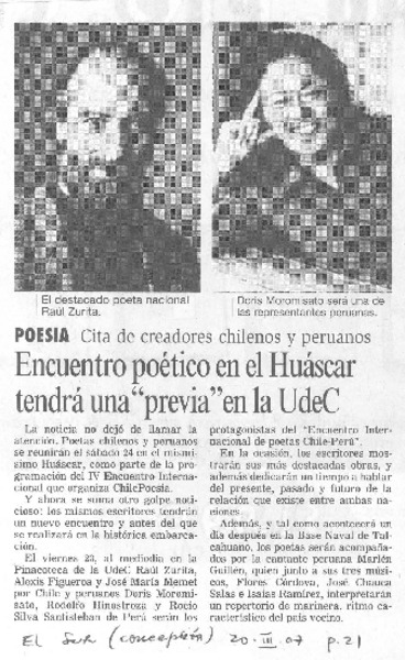 Encuentro poético en el Huáscar tendrá una "previa" en la U de C. [artículo].
