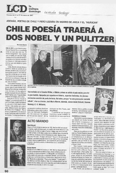 Chile poesía traerá dos Nobel y un Pulitzer [artículo] Javier García.