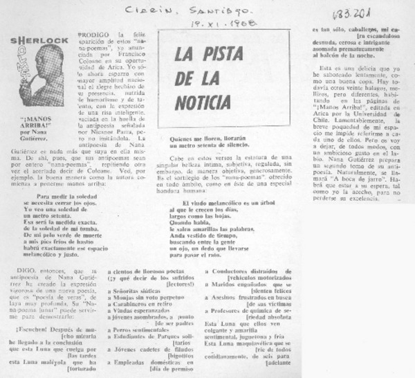"¡Manos arriba!", versos de Nana Gutiérrez [artículo] Alfredo Aranda.