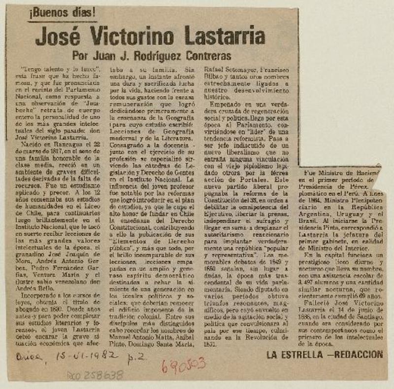 José Victorino Lastarria [artículo] Juan J. Rodríguez Contreras.