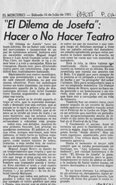 "El dilema de Josefa": hacer o no hacer teatro [artículo] R.C.Q.