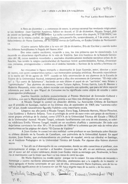 Los conocí un día en Valdivia [artículo] Carlos René Ibacache I.