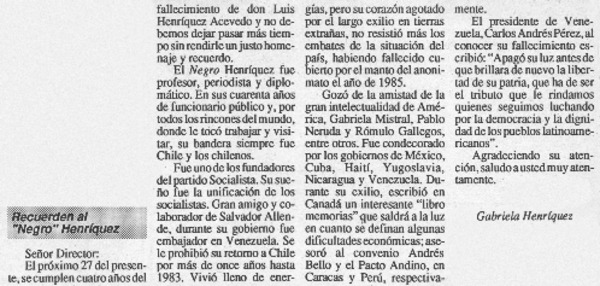El negro Henríquez [artículo] Gabriela Henríquez.