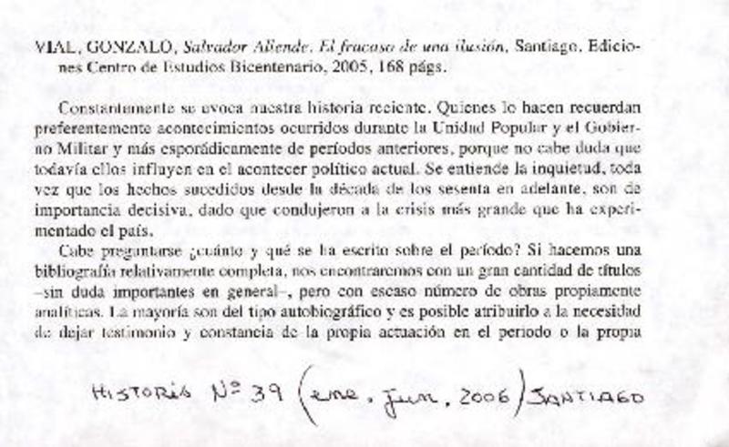 Autores chilenos - Vial Correa, Gonzalo - Salvador Allende
