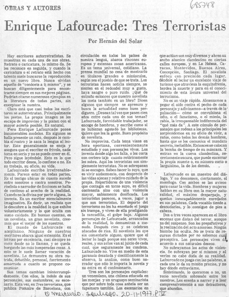 Enrique Lafourcade: Tres terroristas [artículo] Hernán del Solar.