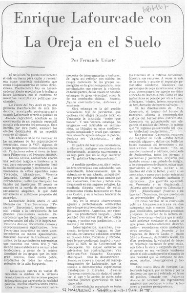 Enrique Lafourcade con la oreja en el suelo [artículo] Fernando Uriarte.