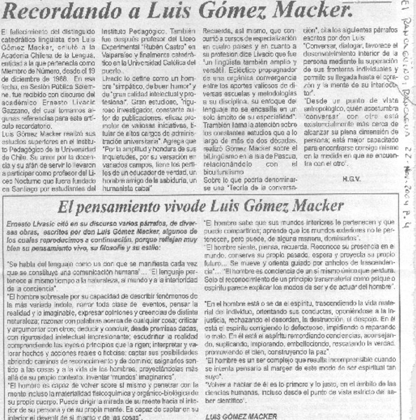 Falleció académico Luis Gómez Macker [artículo] Carlos Ruiz Zaldívar