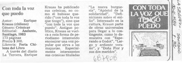 Autores chilenos - Krauss Rusque, Enrique - Con toda la voz que puedo