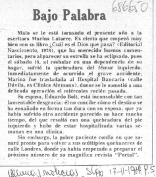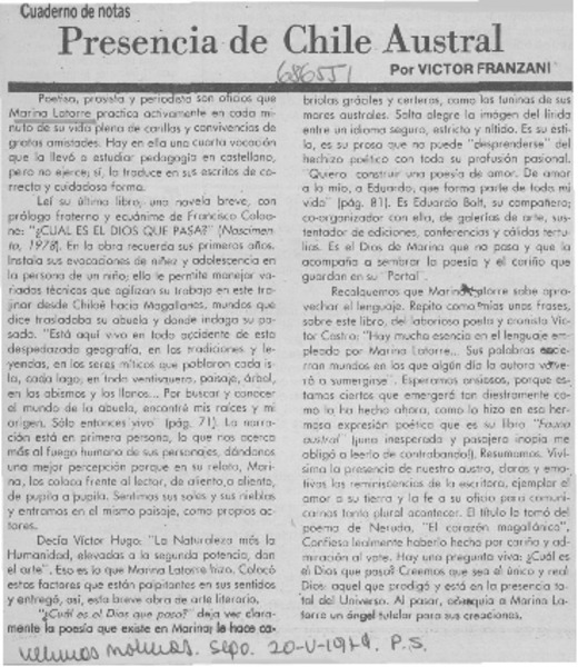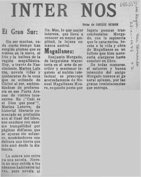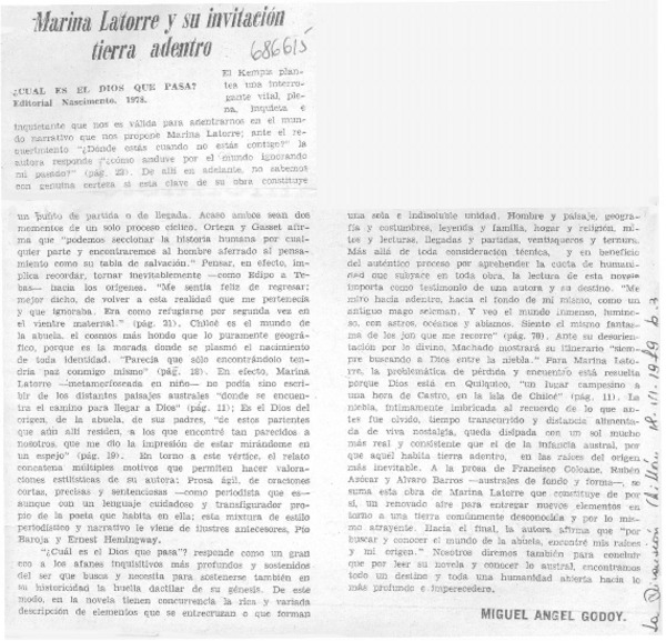 Marina Latorre y su invitación tierra adentro [artículo] Miguel Angel Godoy.