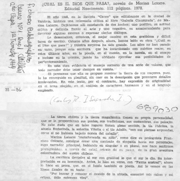 Autores chilenos - Latorre, Marina - Cuál es el Dios que pasa?