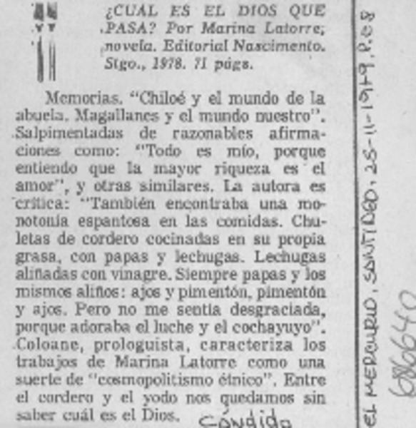 Autoras chilenas - Latorre, Marina - Cuál es el Dios que pasa?