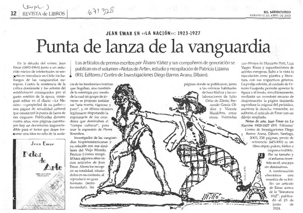 Jean Emar fue el gran defensor del arte nuevo en Chile [artículo] Maureen Lennon Zaninovic.