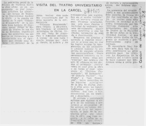 Thrauco enamorado" presenta Escuela de Teatro de la Facultad de Bellas Artes. [artículo]