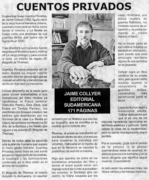 Autores chilenos - Collyer, Jaime - [entrevista] - Cuentos privados