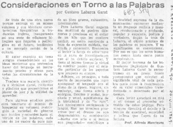 Autores chilenos - Labarca Garat, Gustavo - Consideraciones en torno a las palabras