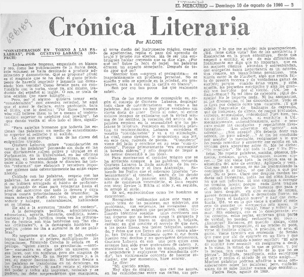 Autores chilenos - Labarca Garat, Gustavo - Consideración en torno a las palabras