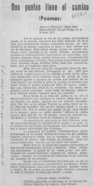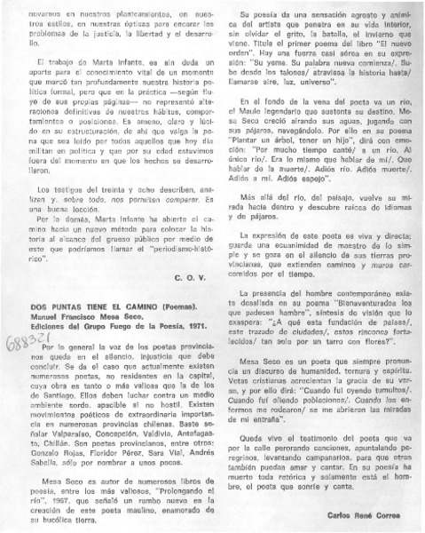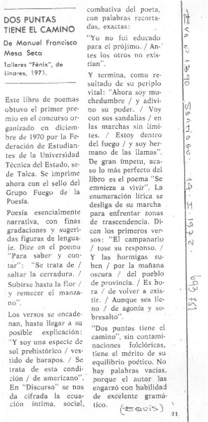 Autores chilenos - Mesa Seco, Manuel Francisco - Dos puntas tiene el camino