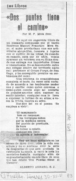 Dos puntas tiene el camino" [artículo] Alberto Arraño.
