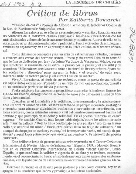 Cambio de casa" [artículo] Carlos René Ibacache.