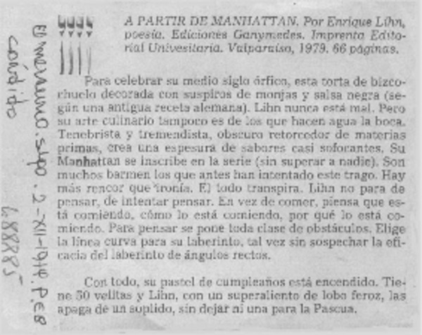 Autores chilenos - Lihn, Enrique - A partir de Manhattan