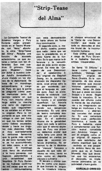"Strip-tease del alma" [artículo] Gonzalo Orrego.