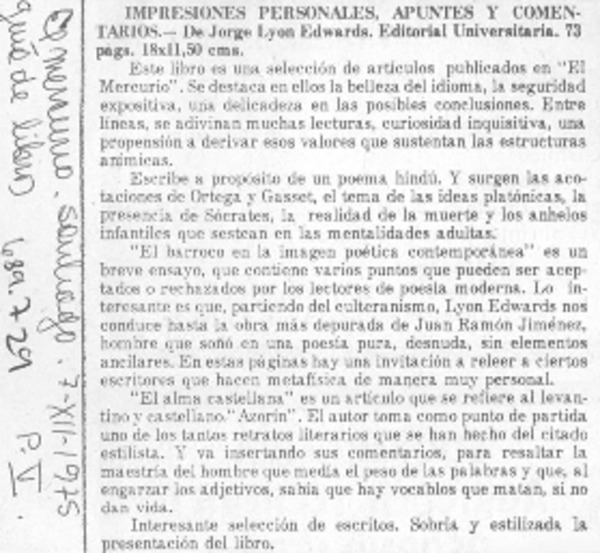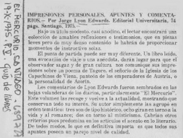 Autores chilenos - Lyon Edwards, Jorge - Impresiones personales, apuntes y comentarios