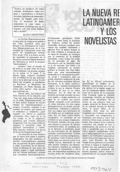 Juan Loveluck, "La novela hispanoamericana" [artículo] Hernán del Solar.