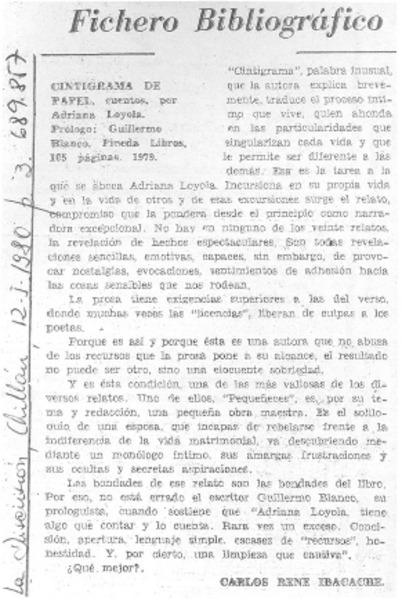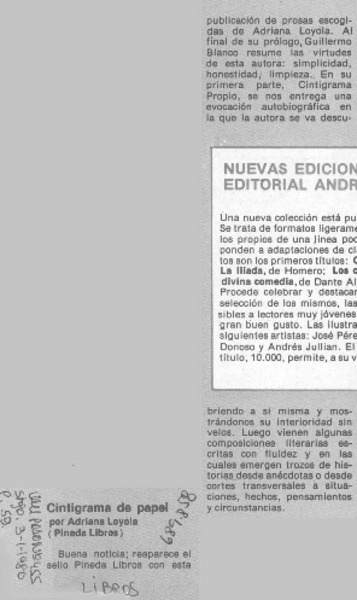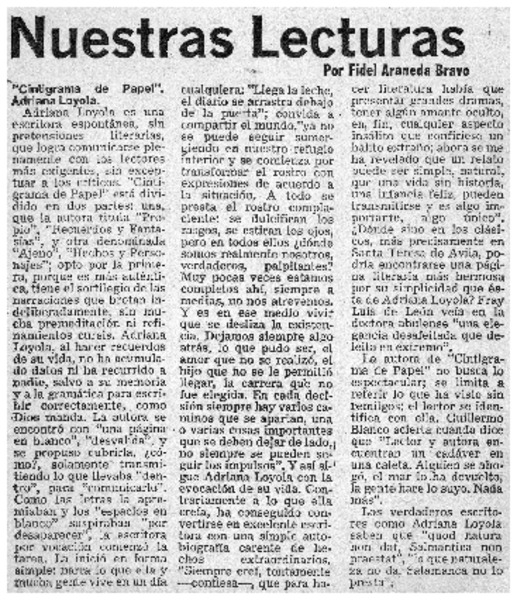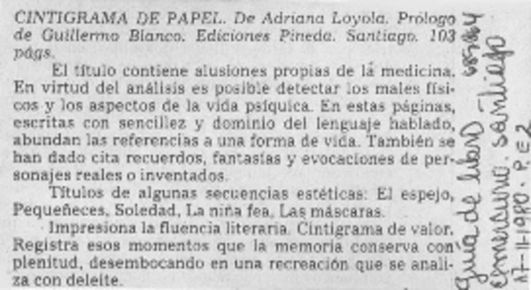 Autores chilenos - Cintigrama de papel - Loyola, Adriana