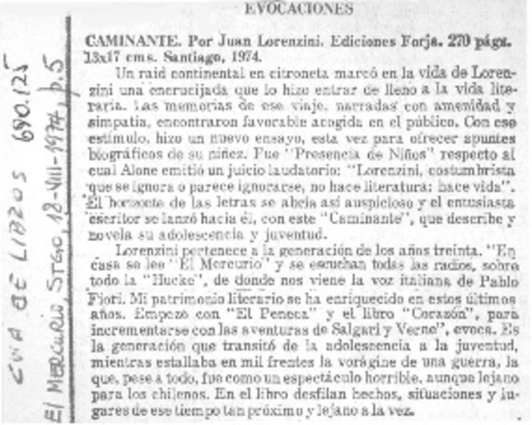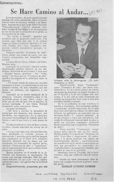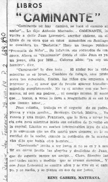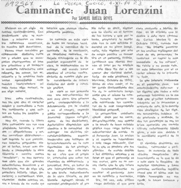 Caminante, Juan Lorenzini [artículo] Samuel Baeza Reyes.