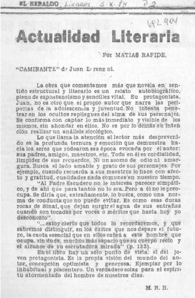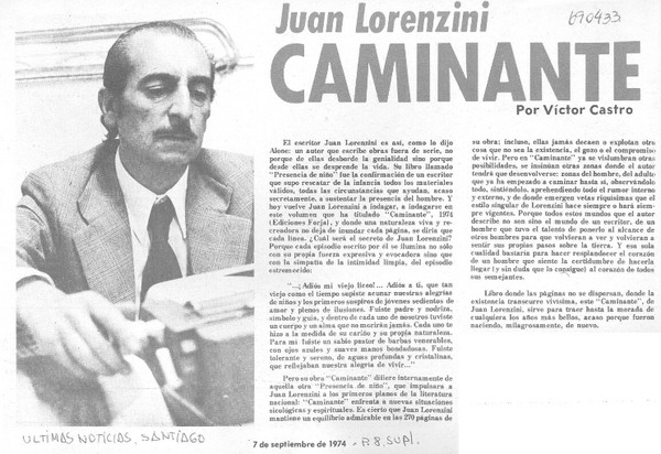 Juan Lorenzini caminante [artículo] Víctor Castro.