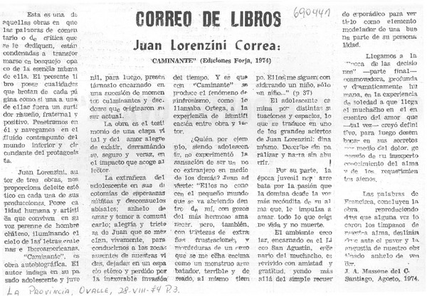 Juan Lorenzini Correa: "caminante" [artículo] J. A. Massone del C.