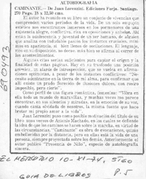 Autores chilenos - Caminante - Lorenzini Correa, Juan Angel