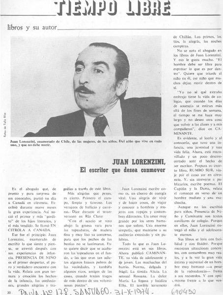 Juan Lorenzini, el escritor que desea conmover. [artículo]