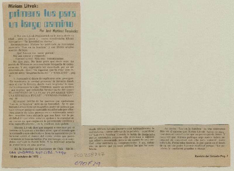 Autoras chilenas - Luz de sombra - Litvak Froimovich, Miriam